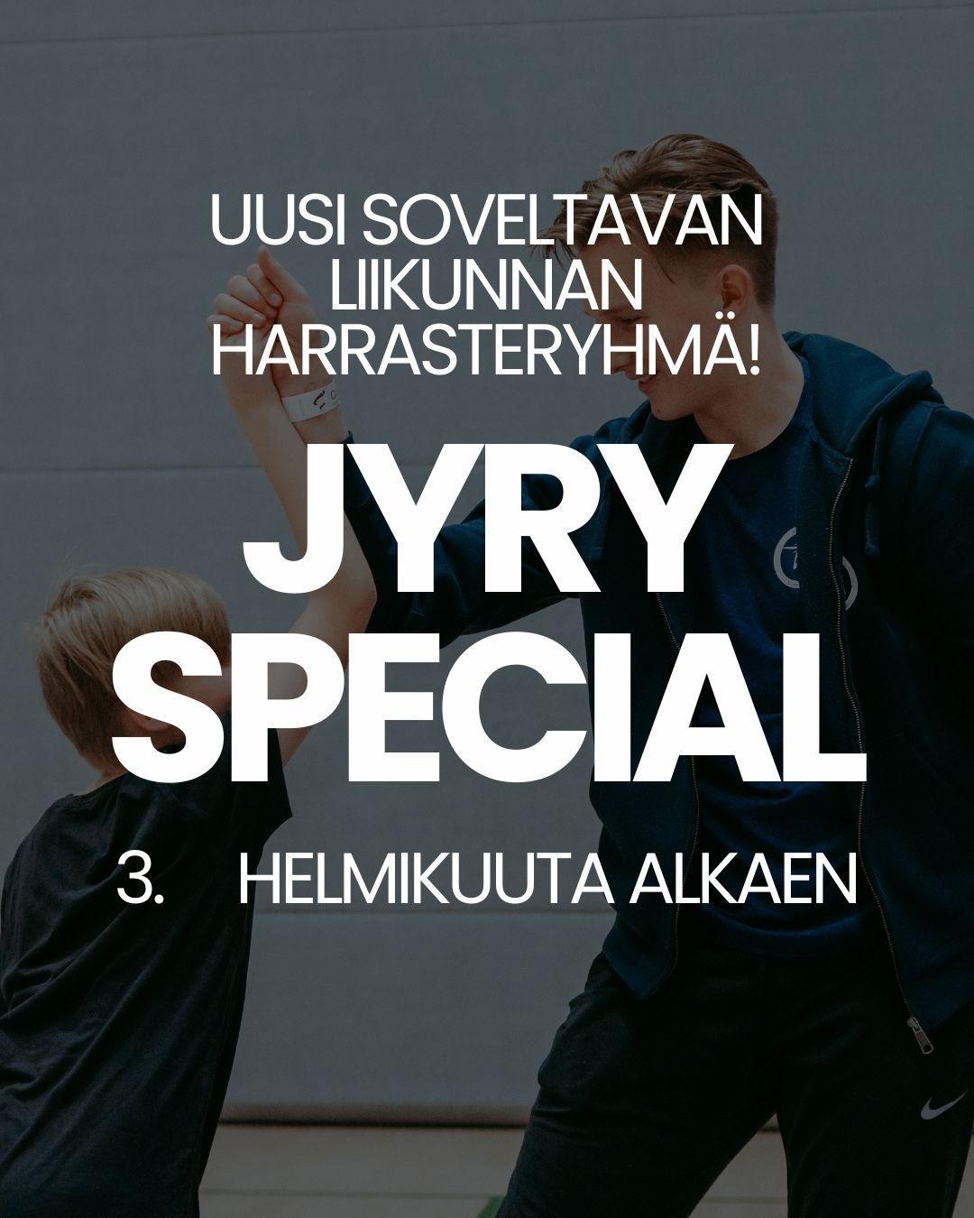 Jyry Special on Turun Jyryn uusi soveltavan liikunnan harrasteryhmä kouluikäisille lapsille ja nuorille. Ryhmä tarjoaa monipuolista ja matalan kynnyksen liikuntaharrastusta turvallisessa ja kannustavassa ympäristössä.