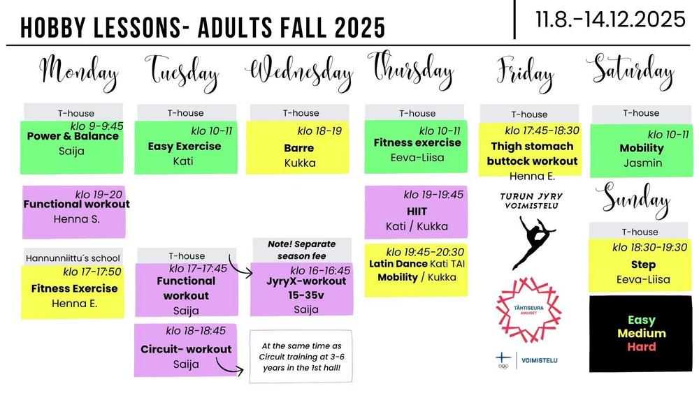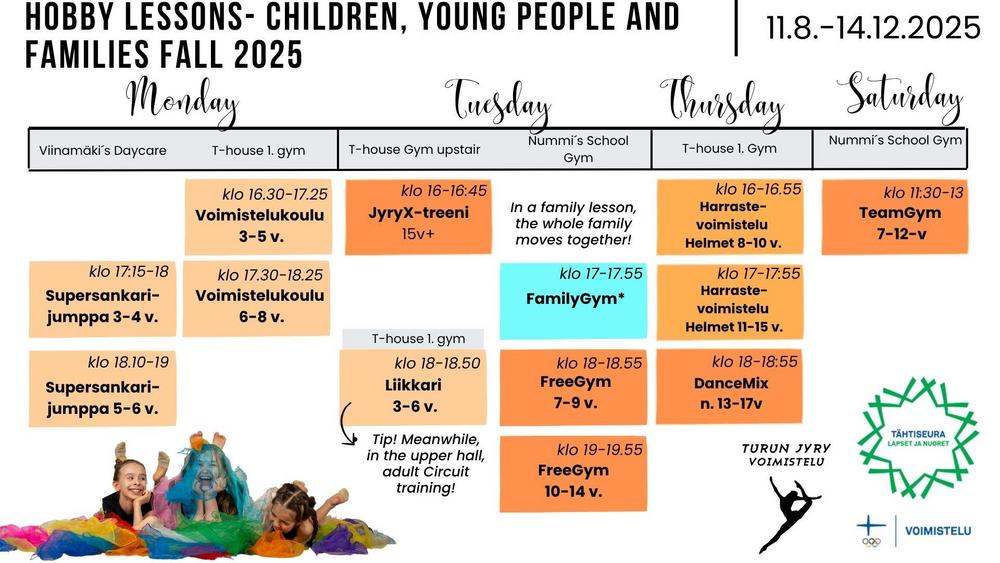 Turun Jyry offers diverse recreational exercise opportunities for children, youth, families, adults, and seniors. Everyone is welcome to participate in the exercise classes, and you can also join during the ongoing season. Additional information about the groups can be found in the links below!