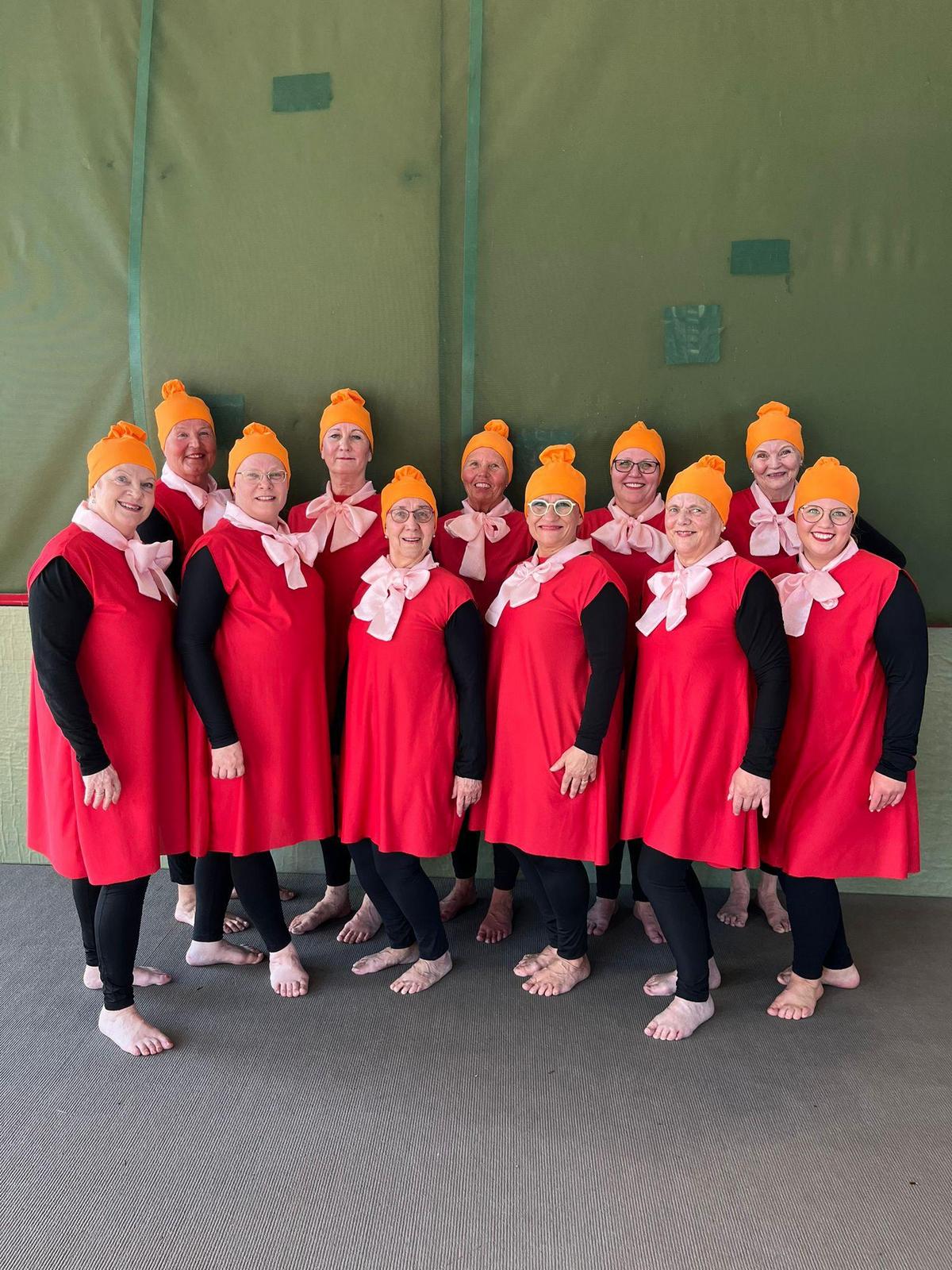 Leidit: Vielä jaksaa, 6.3.22 Supersankarinäytöksessä vas: Päivi,Teija,Ritva,Eeva-Liisa,Merja,Arja,Anne,Tiina,Pirjo Kuvasta puuttuvat Ulla-Maija ja Tuija