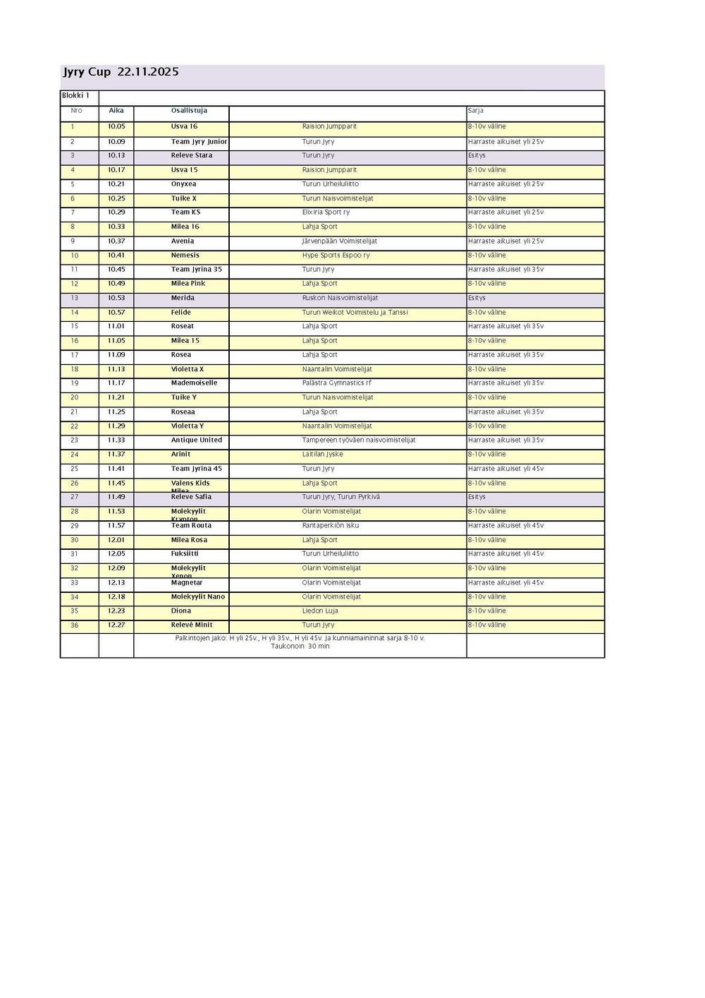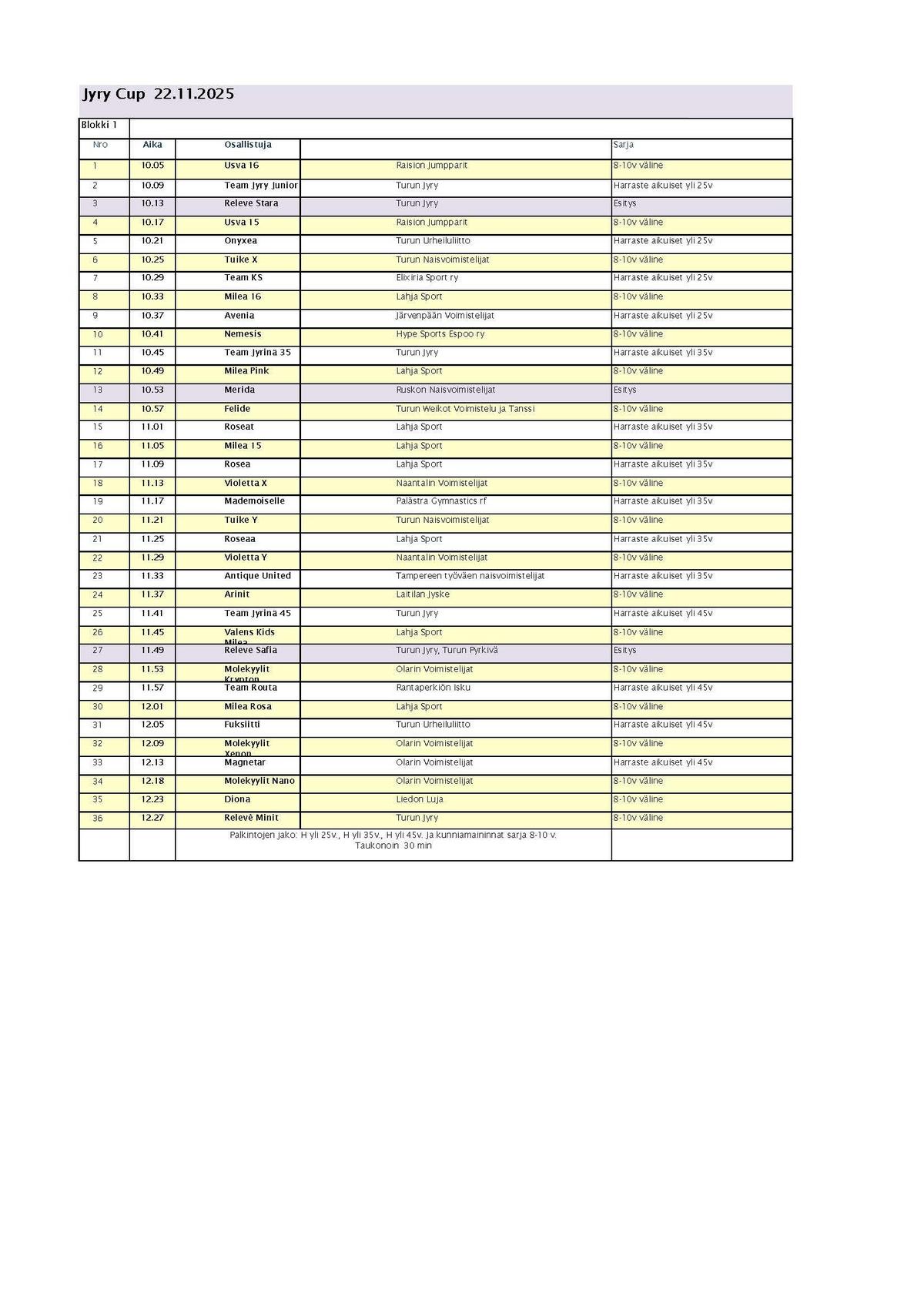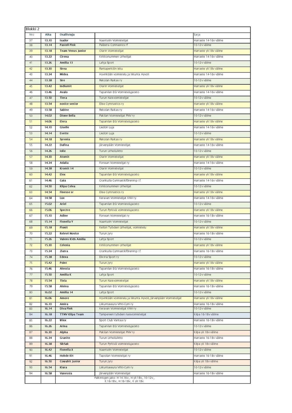 Kilpasarjan sarjat 16-18v. ja yli 18v. on yhdistetty, uusi sarja on kilpa yli 16 v. Suoritusjärjestys pysyy samana